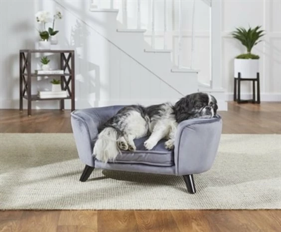 Met de sofa’s van Enchanted biedt je jouw hond niet zomaar een ligplek! Deze mooie Romysofa is een comfortabele, veilige plek in huis voor jouw hond. De stijlvolle, sjieke bank is uitgevoerd met zeer zachte, fluweelachtige bekleding en heeft een rugleuning die rondom loopt, wat jouw dier niet alleen steun, maar ook een veilig gevoel geeft. Daarnaast is de sofa voorzien van pootjes die ervoor zorgen dat de bank niet direct op de grond staat, en jouw dier dus minder last heeft van tocht!