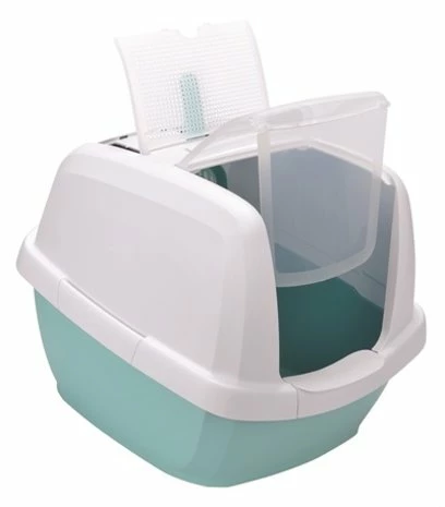 De Imac Kattenbak Maddy Aqua Groen is een handig, groot kattentoilet met kap, koolfiter en schepje.