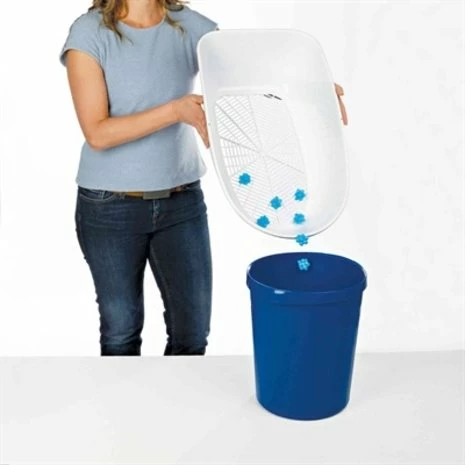 De Trixie Berto Kattenbak Met Scheidingssysteem Donkergrijs/Blauw 39x22x59 cm is een open kattenbak met een hygiënisch scheidingssysteem ter het eenvoudig verschonen van de kattenbak. De kattenbak bestaat uit verschillende lagen, namelijk twee bakken en een zeef. Door het grit uit de bovenste bak door de zeef in het midden heen in de onderste bak te gooien, kun je jouw grit zo eenvoudig hergebruiken zonder de klonten en ontlasting die door de zeef uitgefilterd zijn. Door de Easy Click-sluitingen is het zeer eenvoudig de bakken van elkaar los te maken en zijn deze ook gemakkelijk weer op elkaar te klikken. De opstaande rand zorgt bovendien dat er minder grit uit de kattenbak gegraven wordt.