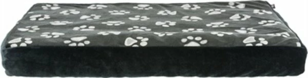 Het Trixie Kussen Jimmy Zwart Met Pootprint 60 x 40 cm is een comfortabel hondenkussen van zacht pluche met polyestervlies vulling. Op dit comfortabele kussen droomt jouw hond heerlijk weg! Dit kussen is gevuld met een polyestervlies vulling van 8-12 cm voor extra veel comfort. Het kussen is bekleed met polyester en heerlijk zacht pluche, uitgevoerd met een leuke pootprint. Het kussen is eenvoudig af te nemen en voor een lange levensduur en extra hygiëne ook wasbaar, de voering met de hand, de bekleding op 40 graden in de wasmachine.