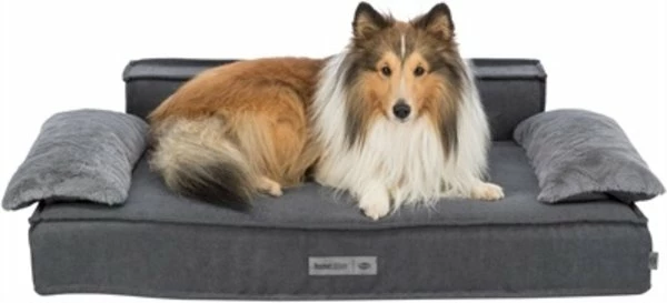 Trixie Sofa Liano Rechthoek Grijs 100 x 60 cm is is een luxe mand voor de hond, een hondenbank met rug- en armleuningen, schuimvulling en anti-slip onderkant. In luxe luieren doet jouw viervoeter met dit mooie bed van Trixie. Deze Liano sofa is net een echte bank, met een rugleuning en stevig genaaide kussens als armleuning. Heerlijk om tegenaan weg te kruipen of de kop op te laten rusten. De bank zelf bestaat uit een kussen bekleed met geweven stof en gevuld met vormstabiele polyestervlies vulling die heerlijk zacht is. De hoes is afneembaar en wasbaar voor een langere levensduur en de onderkant is anti-slip, om verschuiven bij het opstappen te voorkomen.
