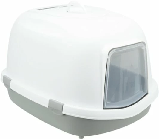 De Trixie Kattenbak Primo XXL Met Kap Grijs / Wit 71 x 56 x 47 cm is een extra grote kattenbak, met filter van actieve koolstof en slipvaste rubberen voetjes. Deze kattenbak is ideaal voor grote kattenrassen, zoals Maine Coons en Noorse Boskatten. De kattenbak is van extra groot formaat en uitgevoerd met kap. Het filter van actieve koolstof voorkomt nare geurtjes rondom de bak en de rubberen voetjes zorgen ervoor dat de kattenbak niet verschuift wanneer de kat in en uit de bak stapt. Door de Easy-Click sluitingen maak je de kap gemakkelijk los om de bak te verschonen. Gemaakt van stevig kunststof met een moderne grijze onderbak en witte kap.