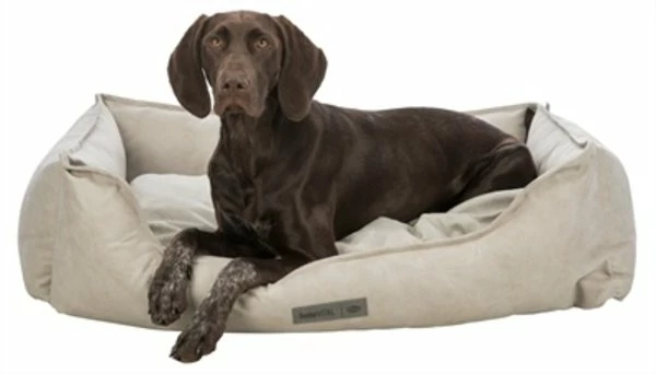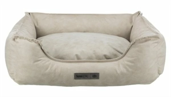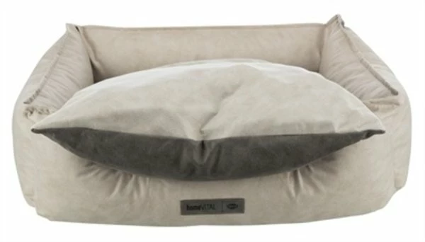 Het Trixie Vital Mand Calito Hoekig Beige / Grijs 80 x 60 cm is een orthopedische hondenmand met visco-elastische en schuimrubber vlokken, wendbaar kussen en een hoes in sjieke velours- en kunstleerlook. Combineer de beste ondersteuning voor jouw hond met stijl met deze mooie, sjieke Calito mand van Trixie! Deze mand biedt jouw hond de perfecte steun tijdens het slapen, door de vulling van visco-elastische en schuimrubber vlokken met memory-effect. Deze laag zorgt voor perfecte drukverdeling tijdens het rusten en het slapen, waardoor de druk op het lichaam beter verdeeld wordt. Dit kan helpen gewrichtsproblemen te voorkomen of te verminderen en zorgt voor een hond die vrolijker en vitaler opstaat. De mand is voorzien van een op 40 graden wasbare hoes van polyester met velours- en kunstleerlook in een kleurcombinatie die zowel bij het moderne, industriële als het landelijke interieur past. Het kussen wendbaar en heerlijk zacht en op de rand met polyestervlies vulling kan de hond comfortabel zijn kop laten rusten. De mand is voorzien van een slipvaste onderkant die schuiven voorkomt wanneer de hond gaat liggen of opstaat.